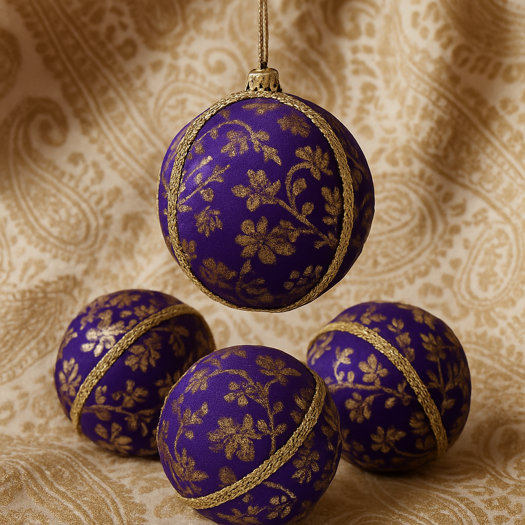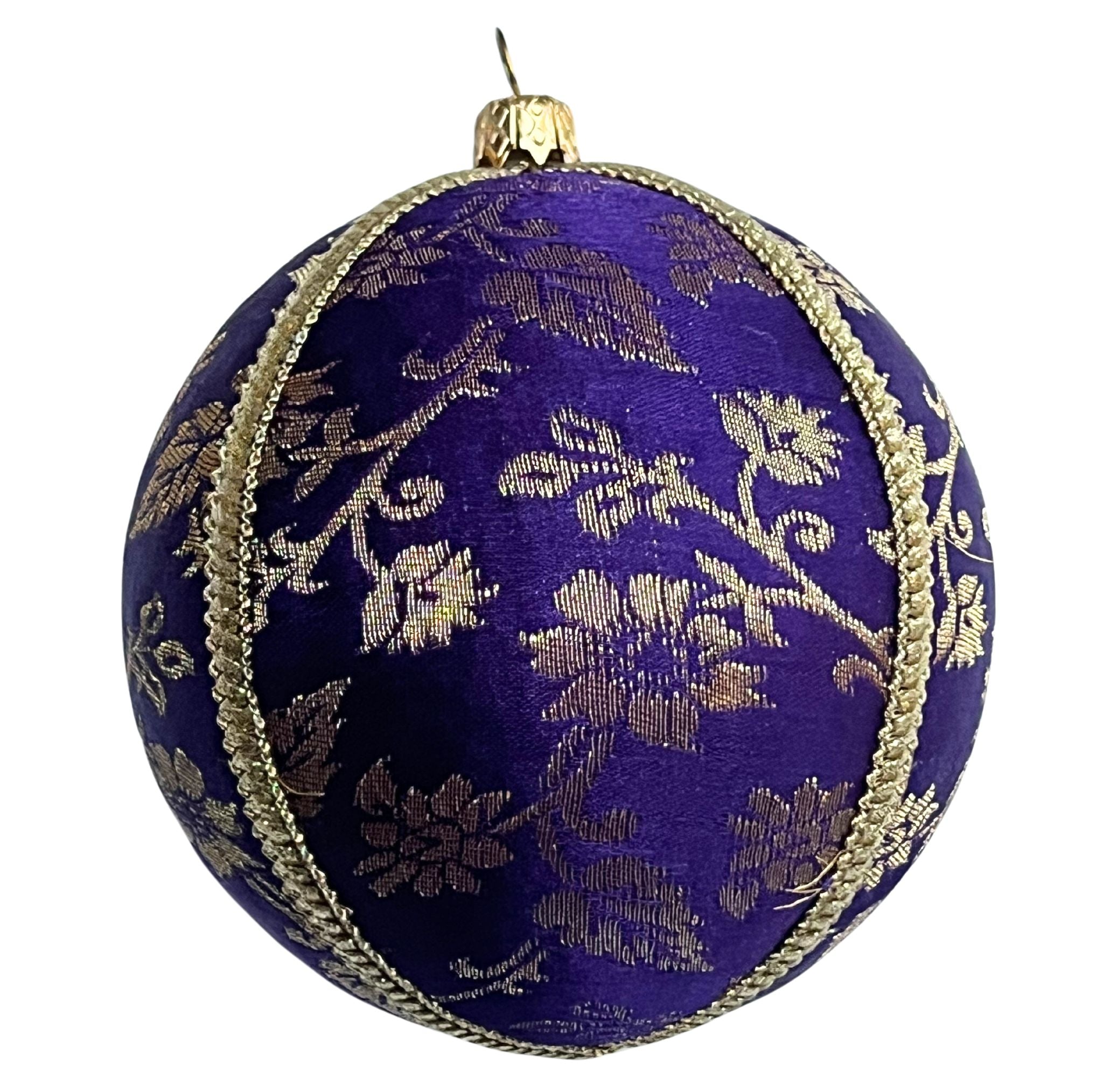 Kaasni Bauble – 8cm Royal Purple and Gold Brocade Fabric Ornament