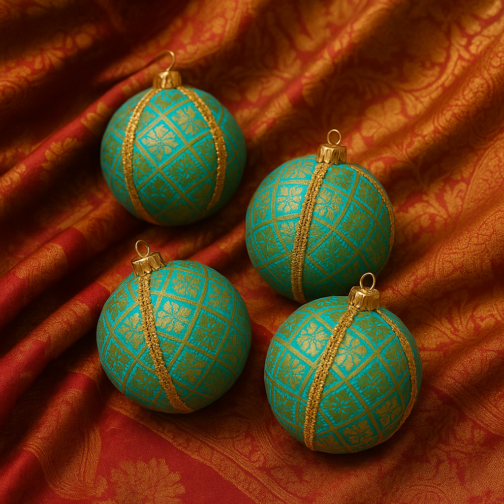 The Lakshmanji Bauble is a delicately refined decorative piece defined by soft colour, intricate weaving, and understated elegance. Handmade in the UK using reclaimed brocade textiles, each 8cm fabric bauble is individually crafted, ensuring every piece is entirely unique.